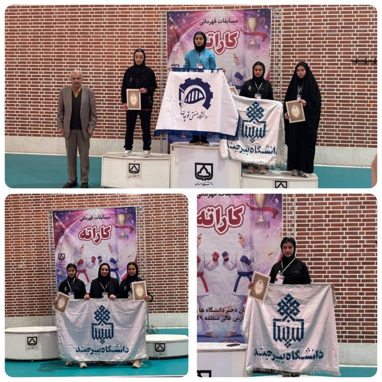 به گزارش روابط عمومی و اطلاعرسانی دانشگاه بیرجند، تیم کاراته دانشجویان دختر دانشگاه در مسابقات کاراته منطقه ۹ دانشجویان دختر دانشگاهها و مؤسسات آموزش عالی کشور، موفق به کسب دو مقام سومی ارزشمند در این دوره از رقابتها گردید.